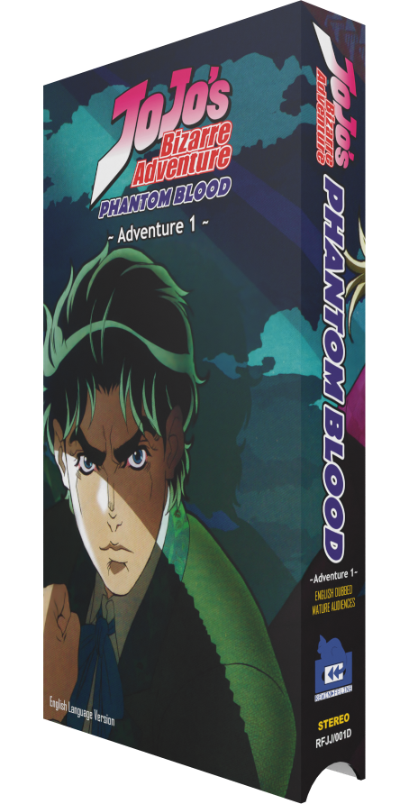 A custom VHS tape made using the first 3 episodes of "Jojo's Bizarre Adventure - Phantom Blood". All of the video editing, such as pan & scanning & text, were done by me. The packaging